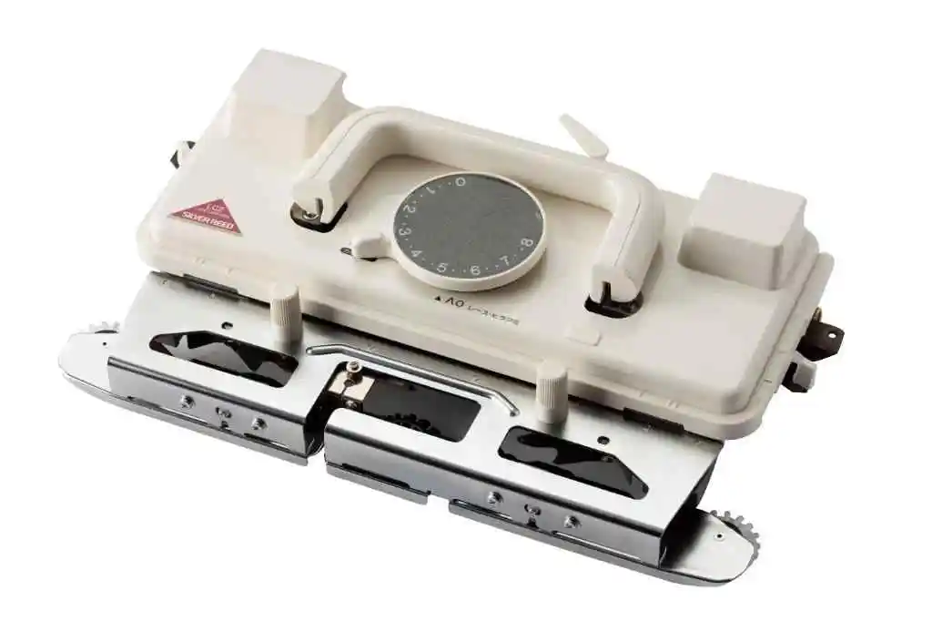 Now you can knit delicate lace patterns as quickly and easily as stockinet – no extension rails – no extra transfer rows – one pass of the carriage transfers stitches and knits stockinet in one smooth and easy action.